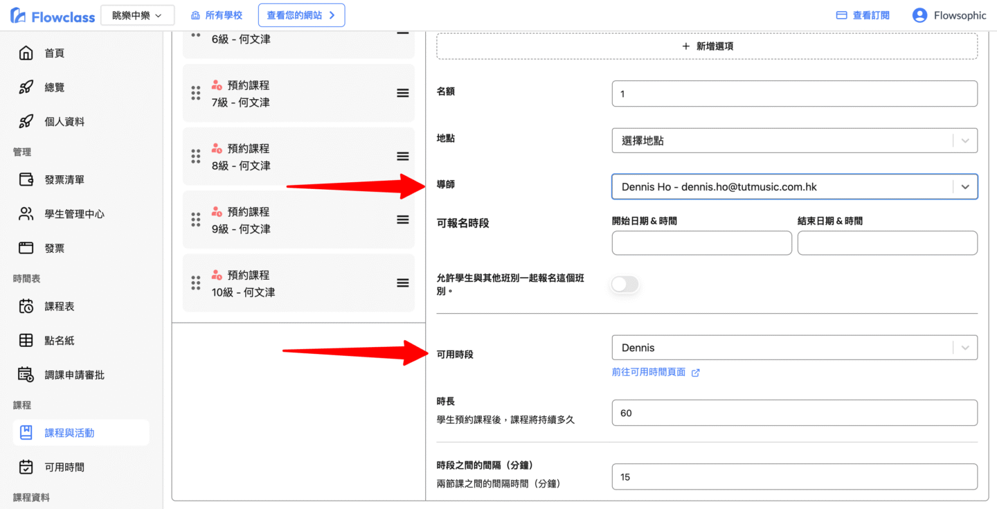 By following these steps, you can successfully assign your tutor account and available time, allowing students to view and select the tutor’s available time slots in the corresponding scheduled course.