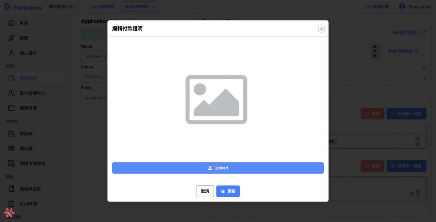 如學生以銀行轉帳或現金繳費,管理員可用此功能上傳收據: